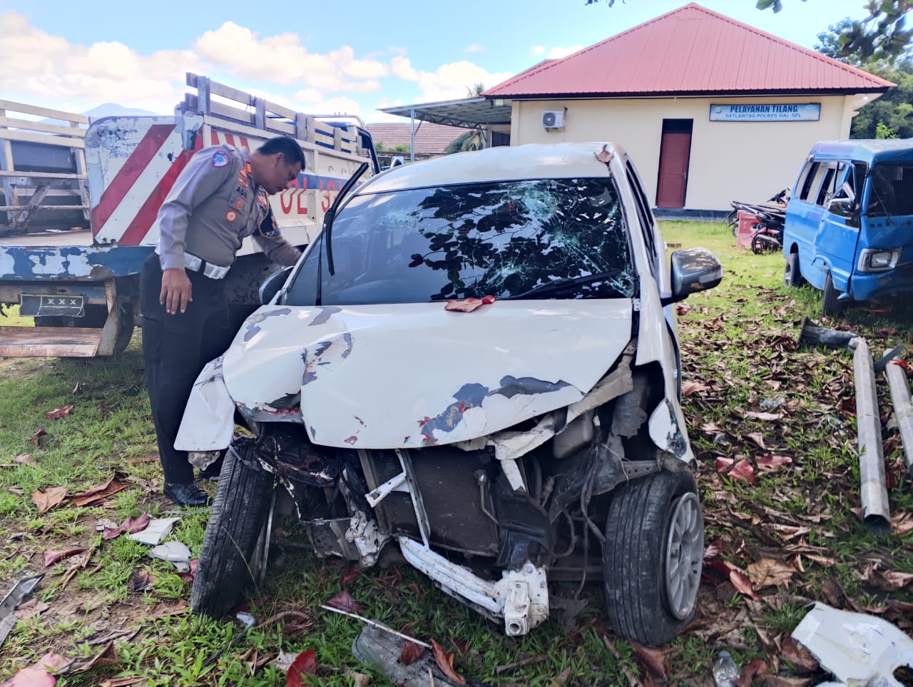 Rubrikmalut.com – Kecelakaan yang terjadi di Jalan Oesman Syah Desa Tomori, kecamatan bacan Kabupaten Halmahera selatan, Mobil Toyota Avanza Bernomor Polisi DG 1354 P di laporkan menabrak tiang listrik. Senin 29/9/25.